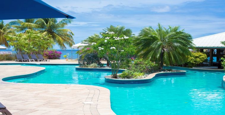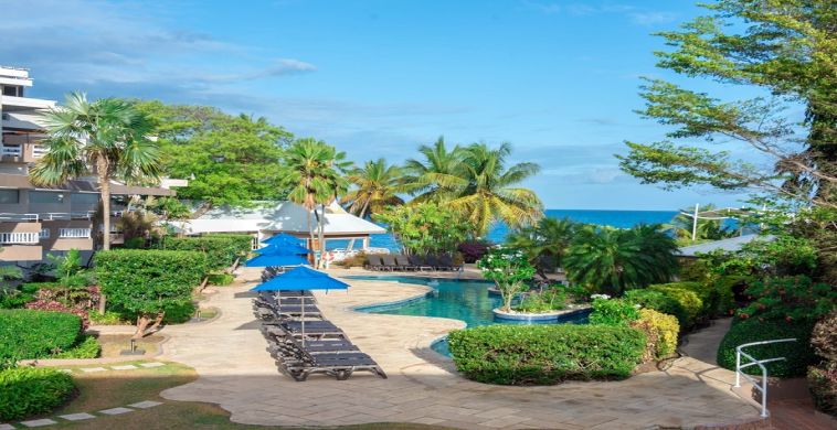 Das Hotel befindet sich wie alle Hotels in Crown Point in der Nähe des Flughafens und der beliebtesten Badestrände Tobagos, darunter Store Bay und der weltberühmte Pigeon Point. Dank der Lage des kleinen, freundlichen Hotels erreicht bequem alle  Aktivitäten und Attraktionen der Region Crown Point. Scarborough ist nur eine kurze Autofahrt entfernt. Auf einem fünf Hektar großen, wunderschön angelegten Gelände direkt am Strand gelegen.Unmittelbar vor der Küste liegt ein Korallenriff - die Gästezimmer sind lebendig dekoriert und zu den Annehmlichkeiten gehören schön angelegte Pools, Wasserfälle, Tauchmöglichkeiten, Volleyball und ein Kinderplanschbereich. Mittag- und Abendessen können à la carte oder nach einem Menü bestellt werden.