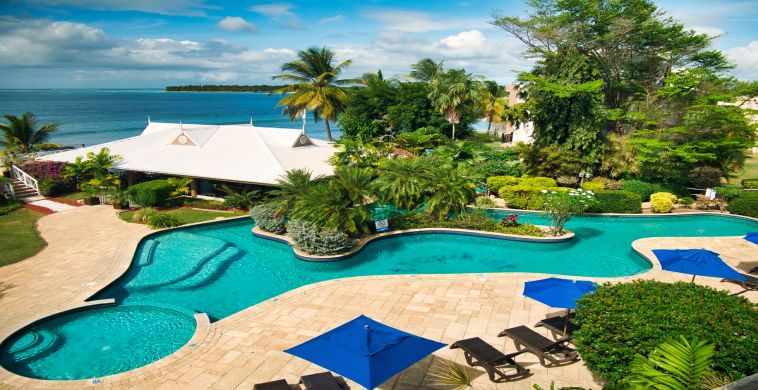 Alle Zimmer des Tropikist liegen in einer 5 Hektar großen Gartenlanschaft. Von hier hat man eine atemberaubenden Blick auf das karbische Meer mit direktem Strandzugang. (Korallenriff vorgelagert)